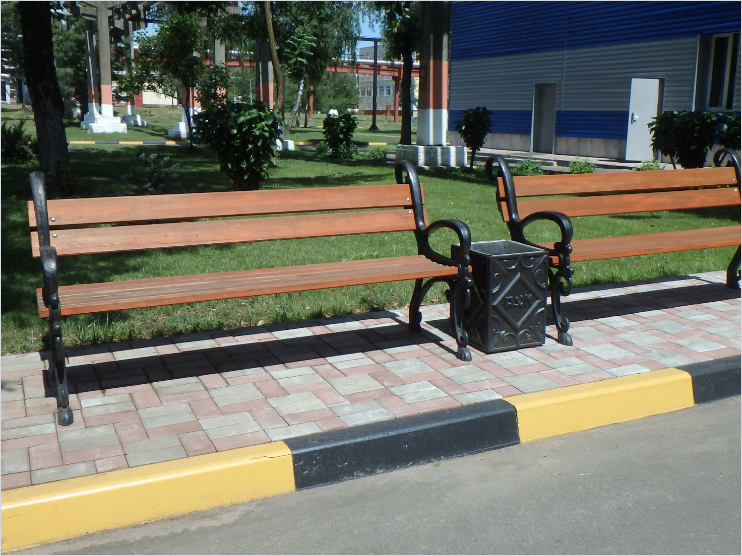 Лавочки и урна собственного производства на территории Ремонтхиммонтаж